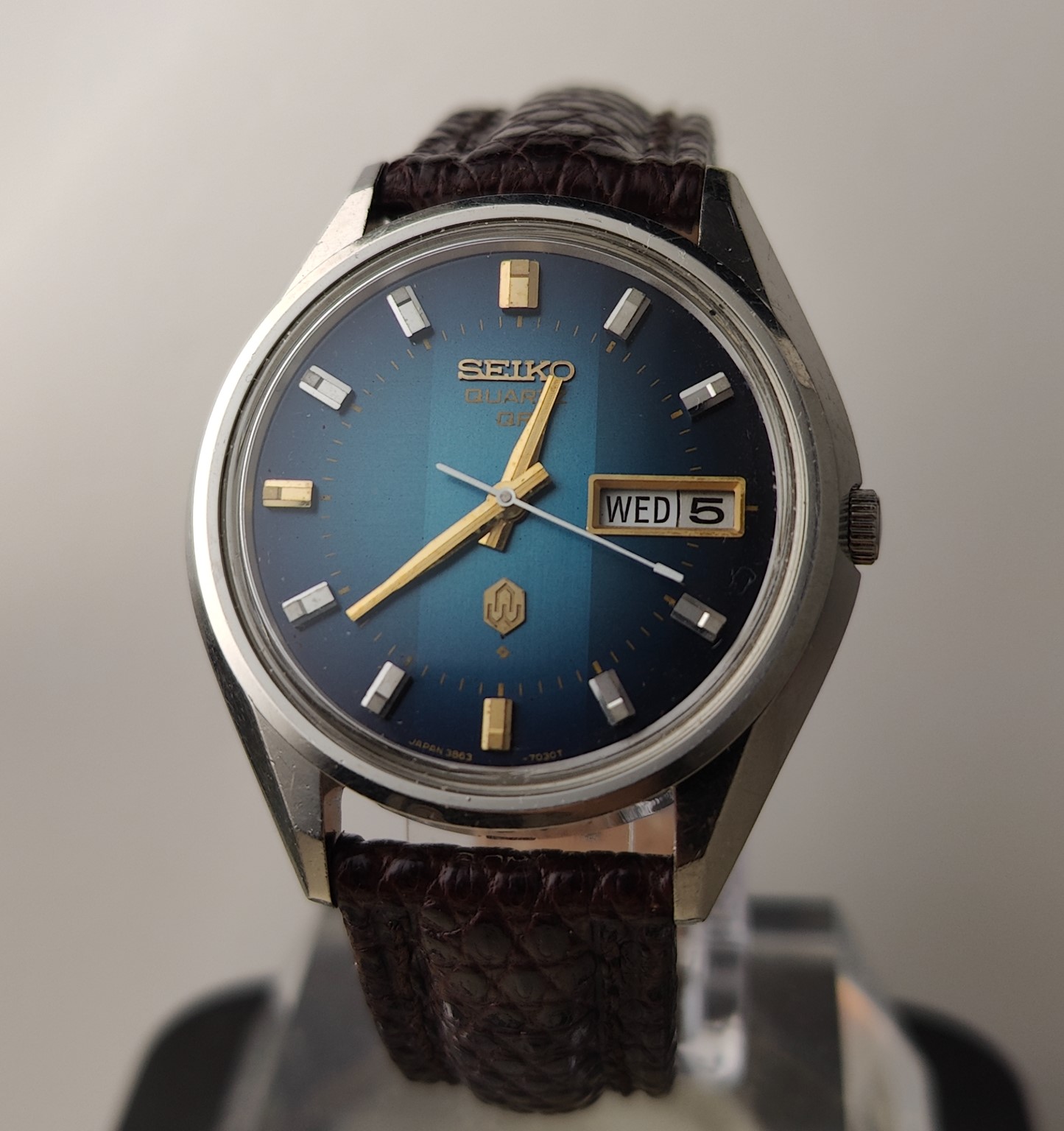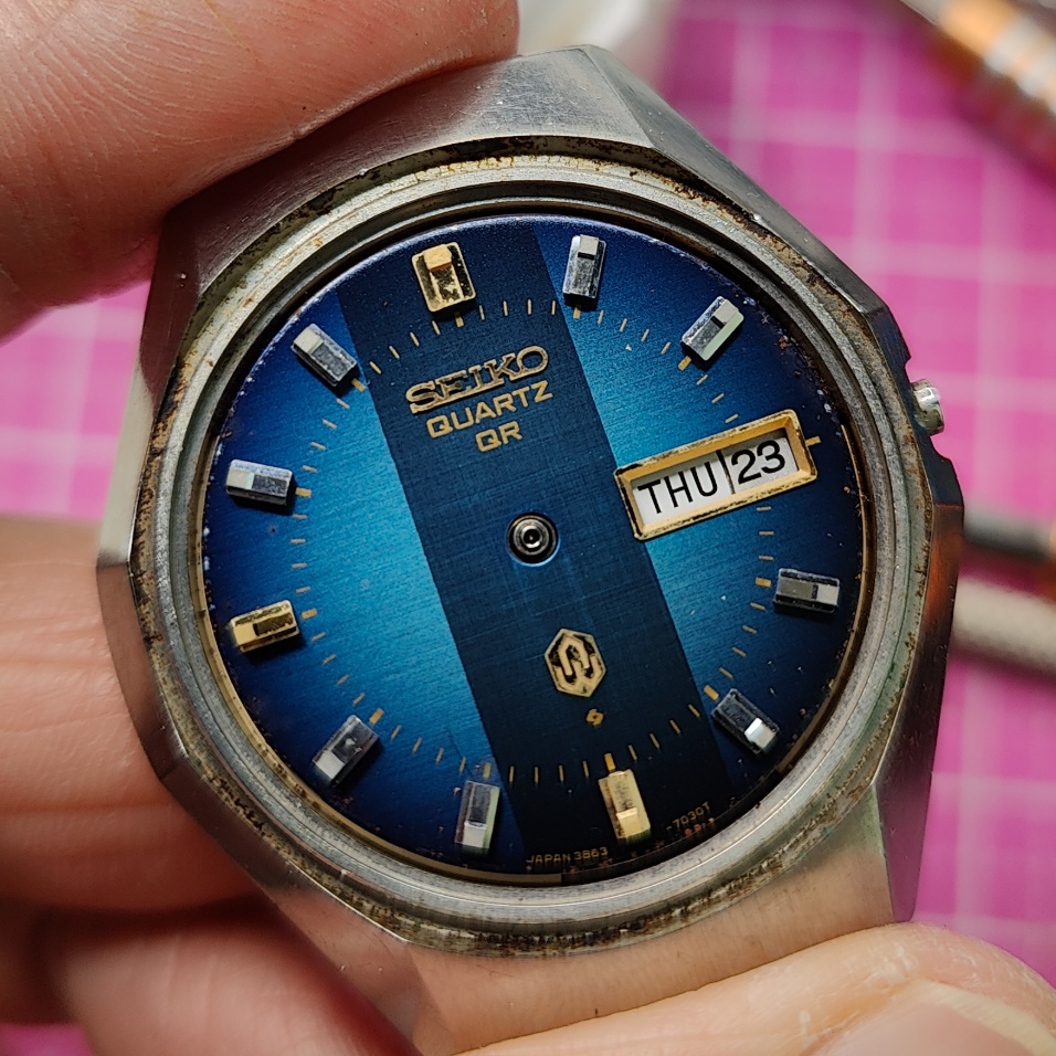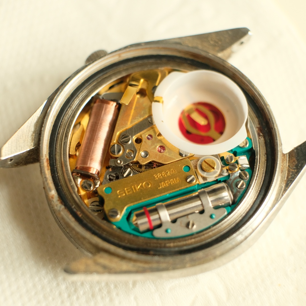 Not long after I secured the 3862-7020 rather cheaply (probably because people took the description "missing strap part" to mean "missing part", it's useful to be able to read Japanese), I managed to fix my 3863-8020 by simply cleaning and relubricating the wheels from the movement side. My old batch of Moebius 9010 has thickened and I probably applied too much.