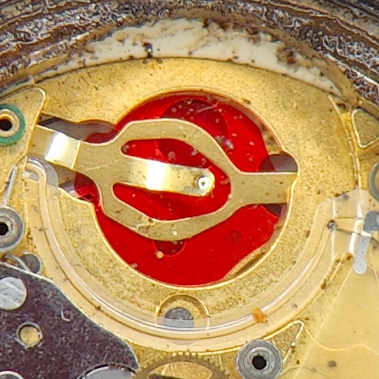 Anyway, I opened the caseback. The gasket was still soft and there was one spot of rust which allows the case ring to be removed with ease. Upon inspecting where the battery condenser should be in order to harvest it, I realized it's not there.