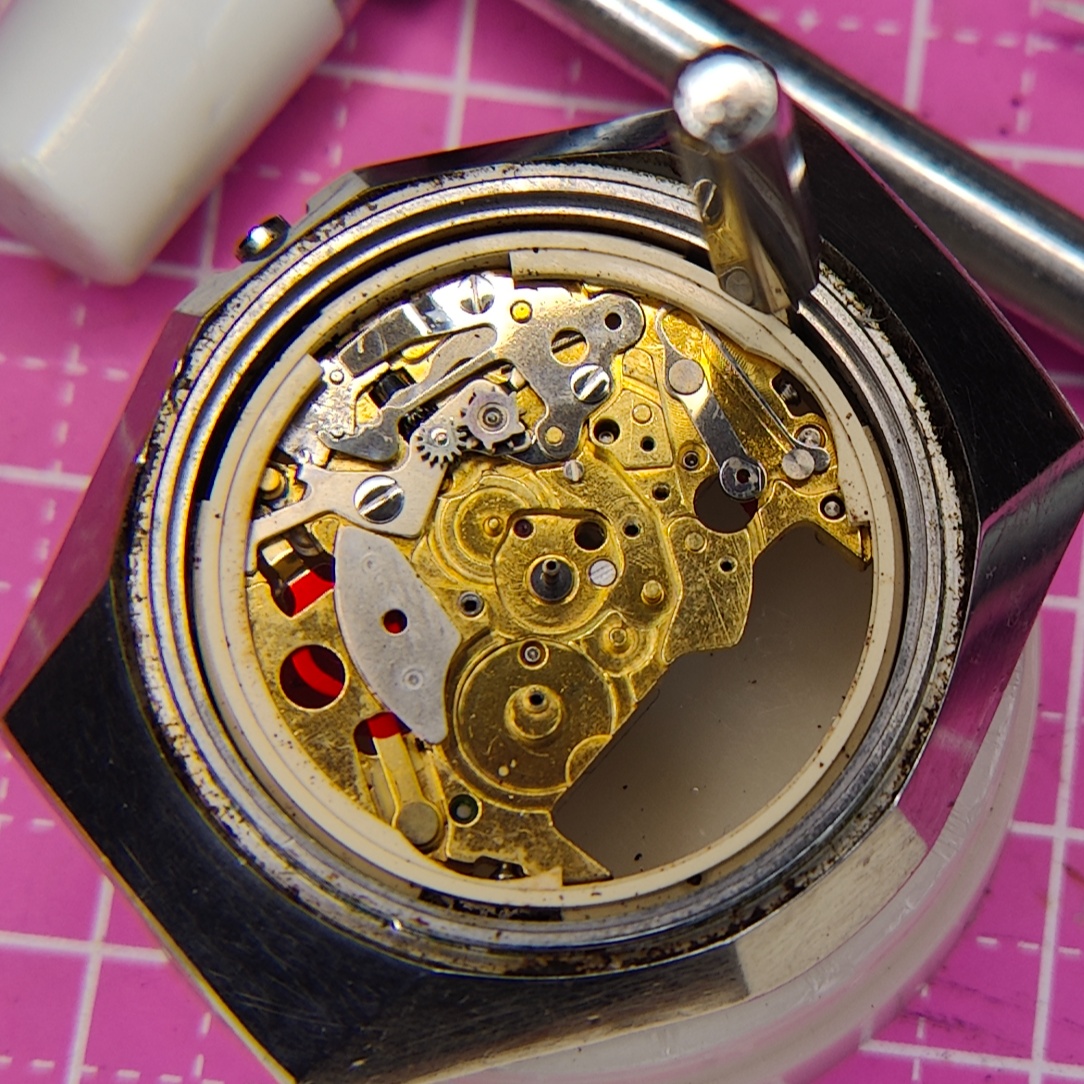 I resumed the servicing of the 3863-7020 movement which I stopped previously having thought that a missing condenser means non-working movement. I was proven wrong after having cleaned and lubricated, the movement was ticking!