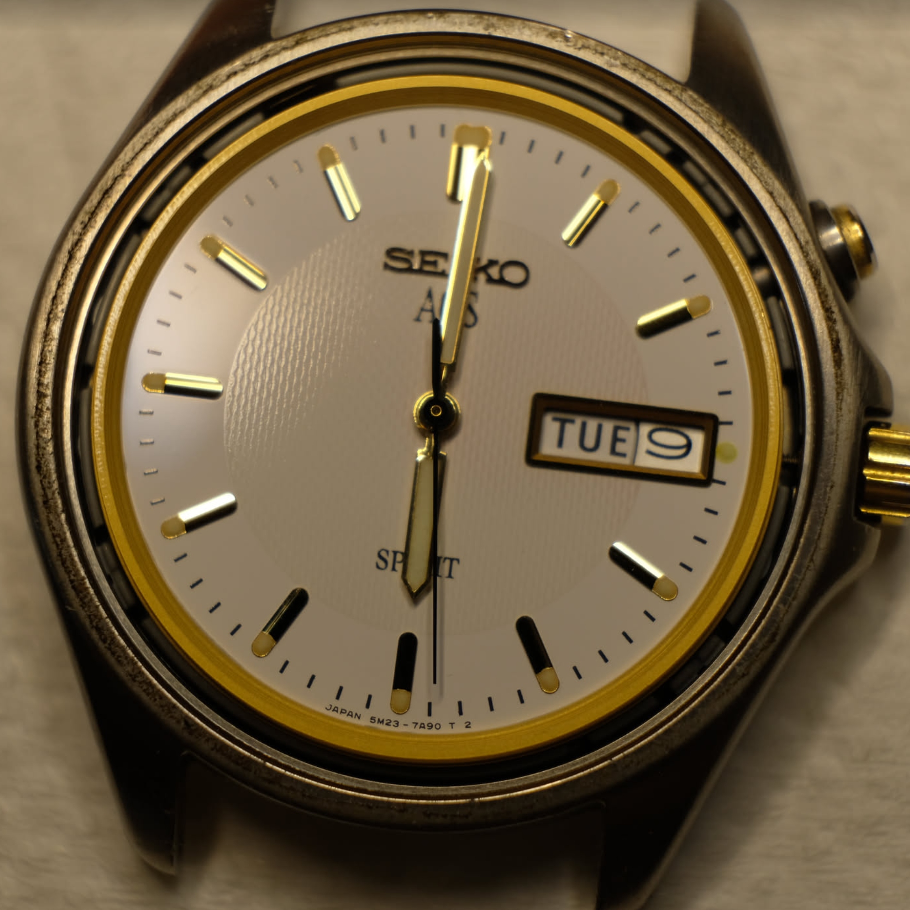 A side note: 5M22-6000 and 5M23-7A70 dial wasn't supposed to be compatible as the first digit of the case code (6/7) indicates a different dial size, but when I placed the 5M23 with its original chapter ring into the 5M22 case, everything seemed to fit. The differentiating part is actually the dial and chapter ring, while the case and bezel are compatible.