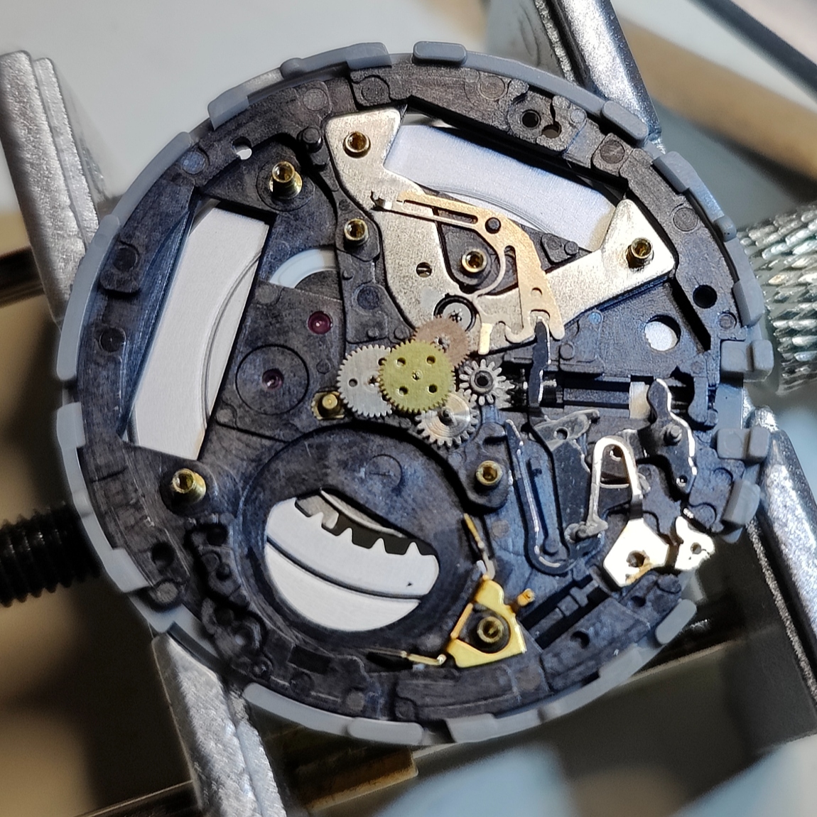 OK, the generator may be defective. At least, with a healthy coil the watch should have been running. I gave this 5M23 a service, cleaning the wheel and oiling the pivots, yet still, no sign of life.
