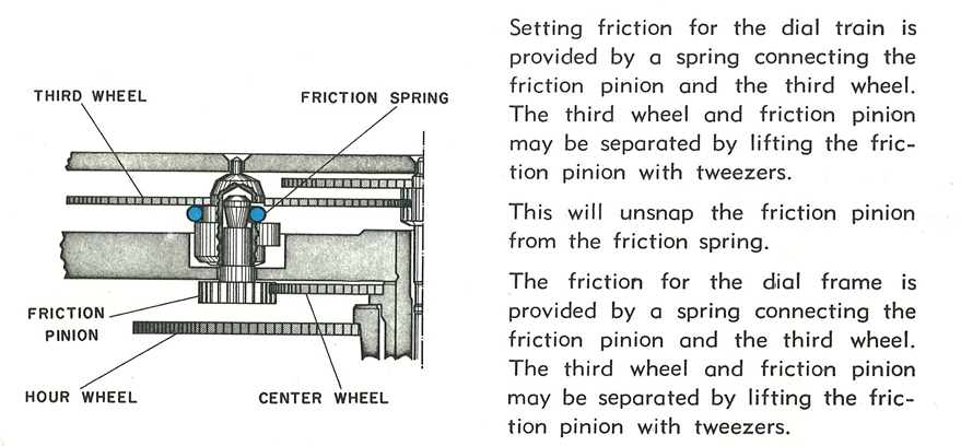 If someone did it the wrong way, the spring will slip out by the force of time setting and eventually either block the train of wheels or fly out entirely, to become stuck onto the permanent magnet.