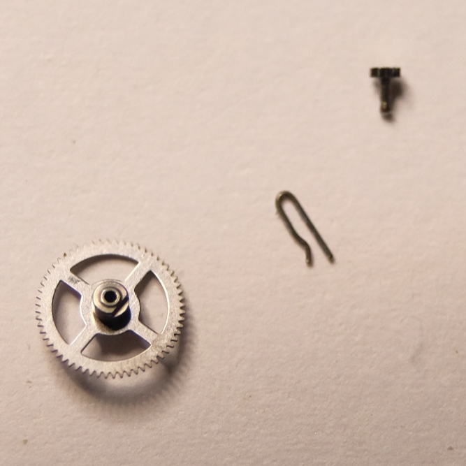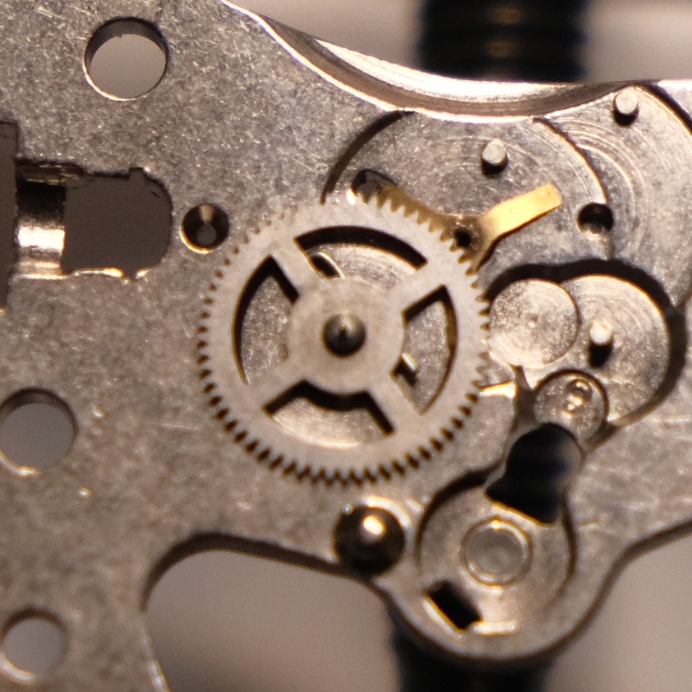I disassembled the movement according to the service manual for cleaning and lubrication. When removing the balance bridge I saw a strange sight. This spring, which hooks onto the third wheel to provide friction to the pinion that drives the minute wheel, is stuck on the permanent magnet of the front plate.